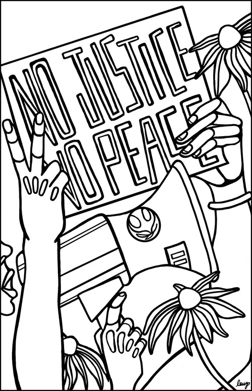 Lewis aligned his dreams with the dreams of God, and he worked his whole life, creating a path for God’s forward motion. I believe this discord in my bones is actually a charge and calling—one that John Lewis named “the deepest calling of your hearts.” We were created to prepare the way for Shalom—complete wholeness and peace—to take shape on this earth, to ensure all of humanity can enjoy the fullness of Creation. May we honor the life and work of Lewis by getting into good trouble, preparing the way for God’s glory to dwell among us. prayer In quiet contemplation, color in the page on the left, reflecting on how the imagery illuminates what you find in the scripture and artist’s statement. Conclude with a silent or spoken prayer to God.